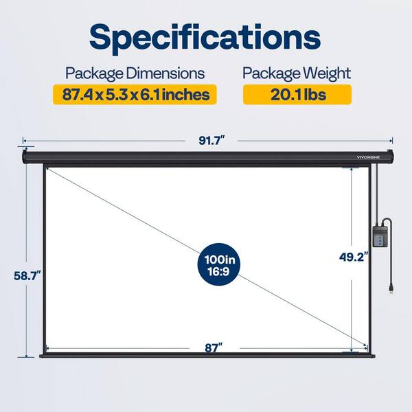 100 in. 16:9 HD 4K Auto Electric Wall and Ceiling Projection Screen with Black Case and Remote