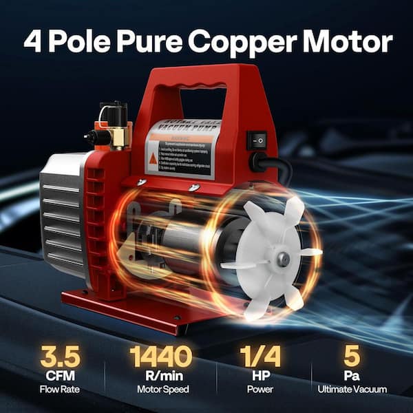 110-Volt 1/4 HP 3.5 CFM Single Stage Rotary Vane Air Vacuum Pump with Oil Bottle in Red