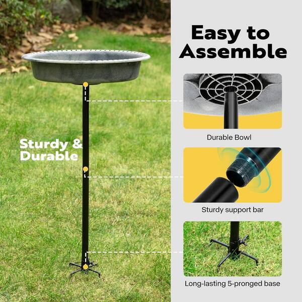 29 in. H Oval Polyresin Garden Birdbath with Metal Stake in Gray