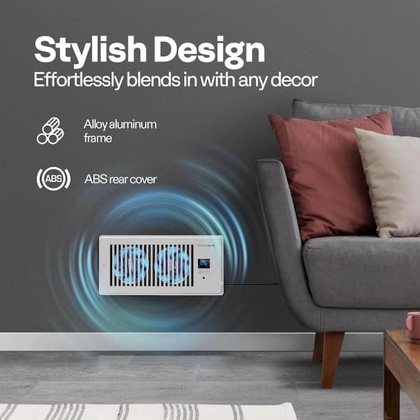 4 in. x 10 in. 120 CFM Wall Mounted Quiet Smart Register Booster Fan with Thermostat Control in White