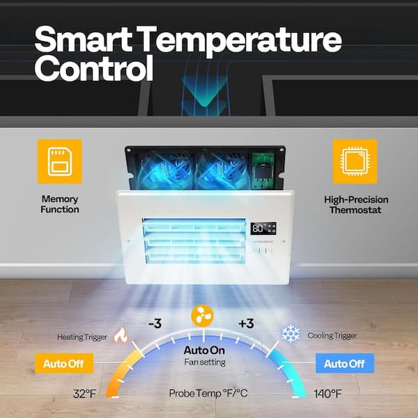 6 in. x 10 in. Opening Smart Register Booster Fan with Adjustable Louver, Thermostat and Remote Control in White
