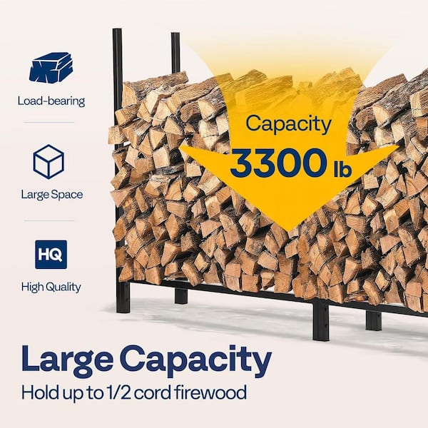 8 ft. Upgraded Heavy Duty Outdoor Firewood Rack with Cover