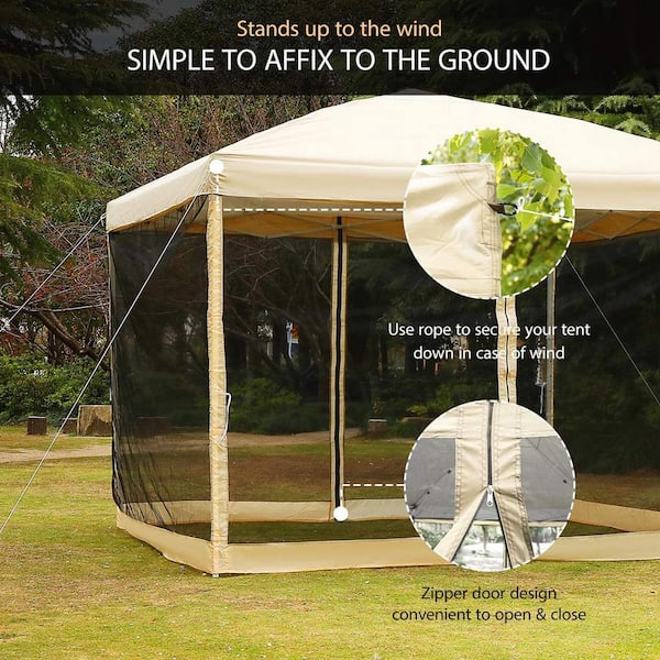 8 ft. x 8 ft. Beige 210D Oxford Outdoor Easy Pop Up Canopywith Mesh Side Walls