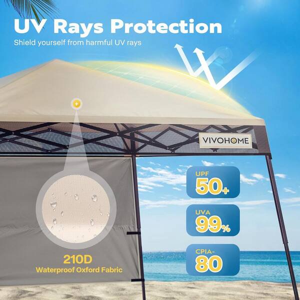 8 ft. x 8 ft. Beige Outdoor Pop-Up Canopy Tent with Central Lock Design, Slant Legs, Backpack