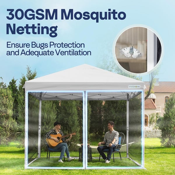 8 ft. x 8 ft. Steel Outdoor Easy Pop-Up Canopy with Mosquito Netting and Roller Bag in White