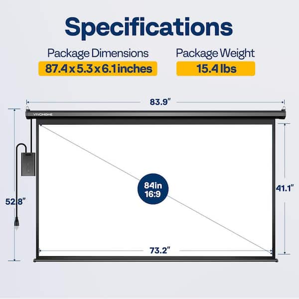 84 in. 16:9 Auto Electric Wall and Ceiling Black Projection Screen with Remote, 4K HD