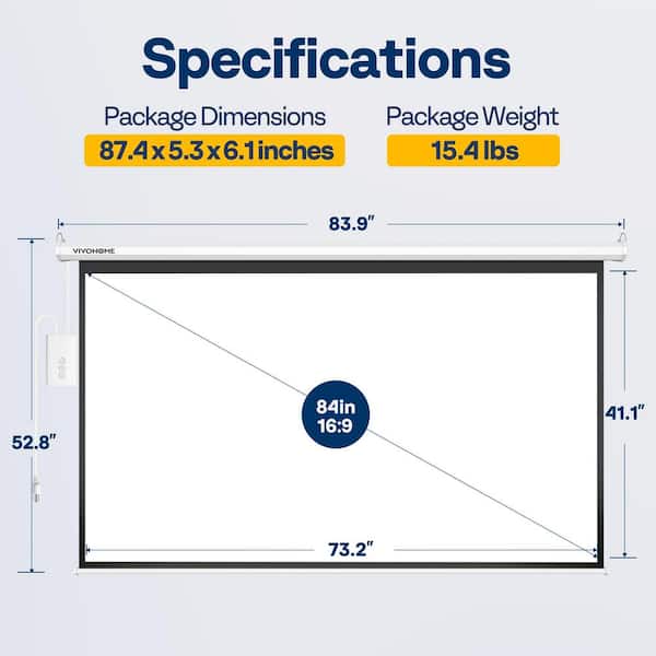 84 in. 16:9 Auto Electric Wall and Ceiling Projection Screen with Remote, 4K HD