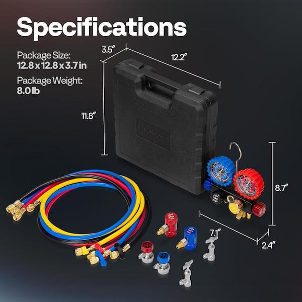 Automotive Household 4-Way Manifold Gauge Set, Compatible with A1 and A2L Refrigerants