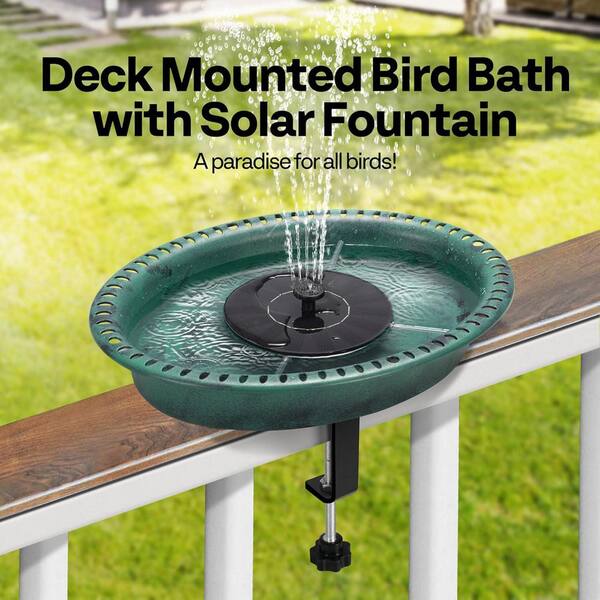 Deck Mounted Oval Green Polyresin Bird Bath with Fountain for Railings