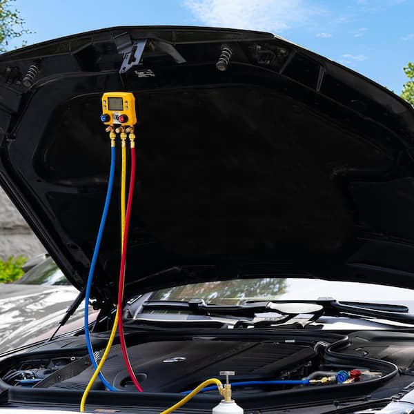 Digital HVAC Manifold Gauge Set with R134a R1234YF Quick Couplers and Can Taps