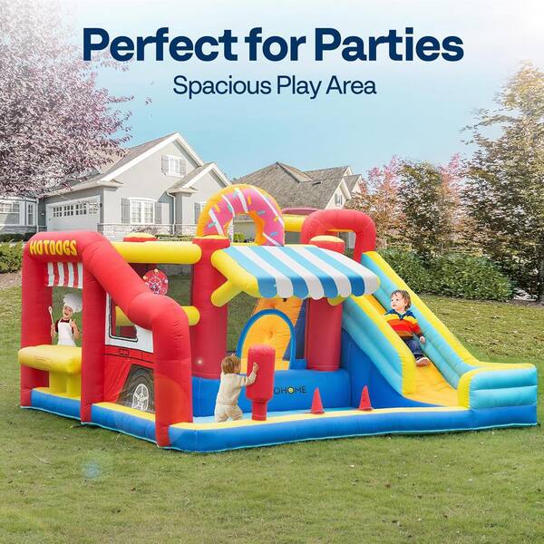 Store Theme Inflatable Bounce House with Slide and 450-Watt Air Blower