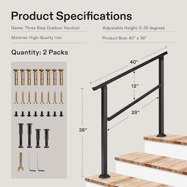 2-Pack 3 Step 36 in. H x 40 in. W Black Wrought Mattle Iron Stair Railing Kit