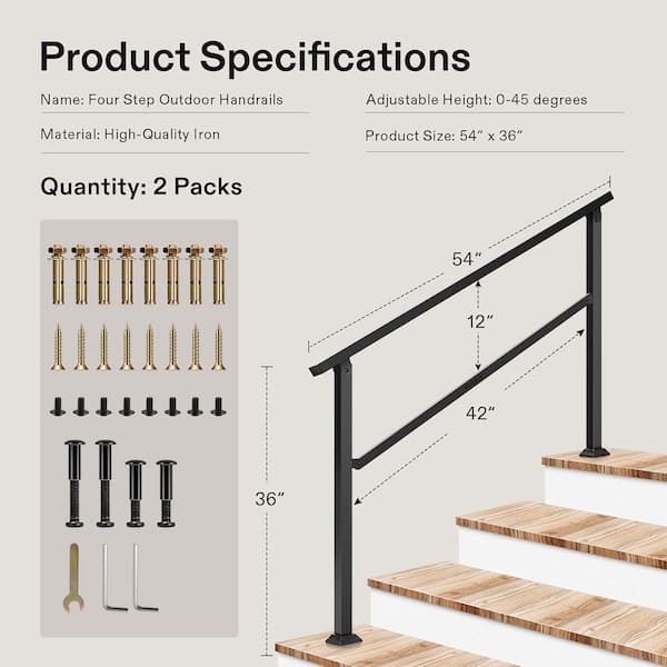 2-Pack 36 in. H x 54 in. W Black Outdoor Wrought Mattle Iron Stair Railing Kit