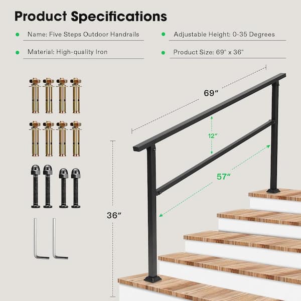 2-Pack 5 Step 36 in. H x 69 in. W Black Wrought Mattle Iron Stair Railing Kit