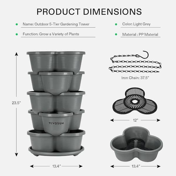 5 Tier PP Vertical Stackable Planter (30 Pots) in Grey