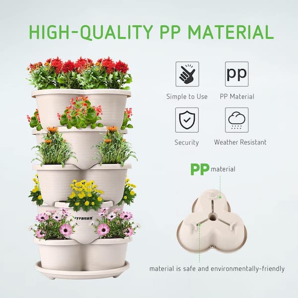 5 Tier PP Vertical Stackable Planter (30 Pots) in Ivory