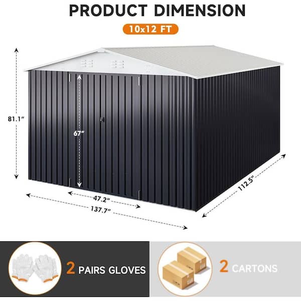 12 ft. W x 10 ft. D Outdoor Metal Shed Storage with Updated Frame Structure and Lockable Doors, White (120 sq. ft)