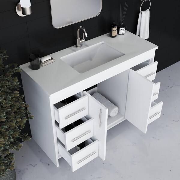 Capri 48 in. W x 22 in. D Bathroom Vanity in White with Microstone Vanity Top in White with White Basin