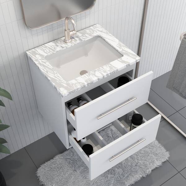Napa 24 in. W x 22 in. D Single Sink Bathroom Vanity Wall Mounted in White with Carrera Marble Countertop