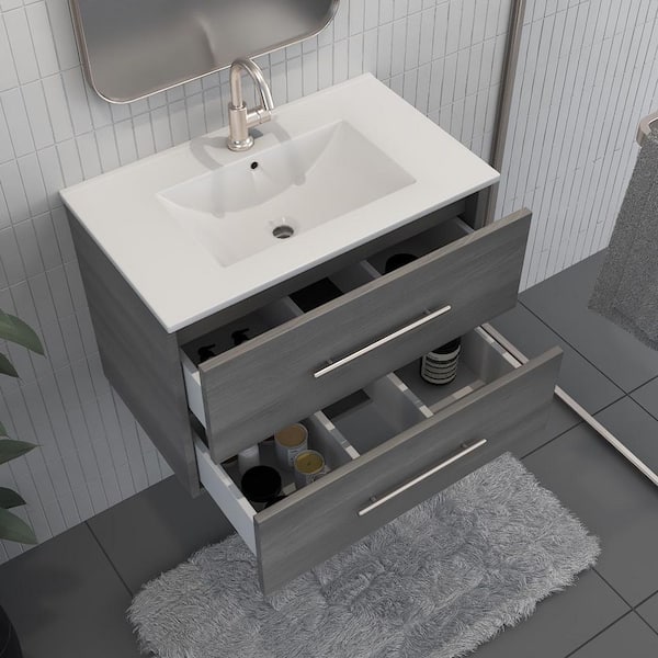 Napa 30 in. W x 18 in. D Bath Vanity in Ash Gray with Ceramic Vanity Top in White with White Basin