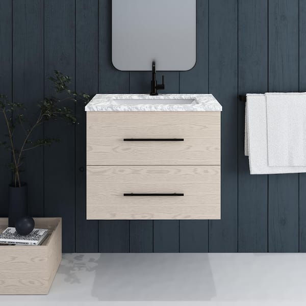 Napa 30 in. W x 22 in. D x 21-3/4 in. H Single Sink Bath VanityWall in Natural Oak with White Carrera Marble Countertop