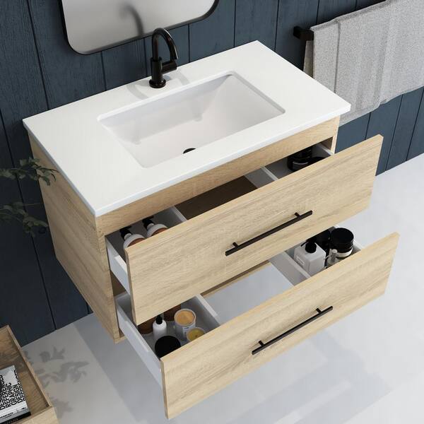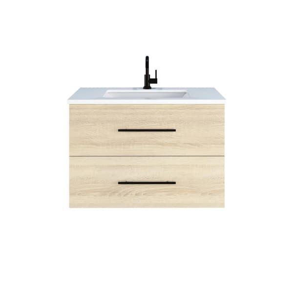 Napa 36 W x 22 D x 21-3/8 H Single Sink Bathroom Vanity Wall Mounted in White Oak with White Quartz Countertop