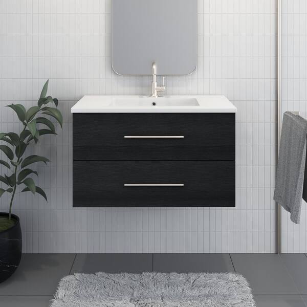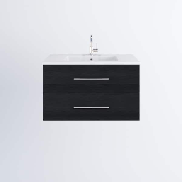 Napa 36 in. W x 20 in. D Single Sink Bathroom Vanity Wall Mounted in Black Ash with Acrylic Integrated Countertop