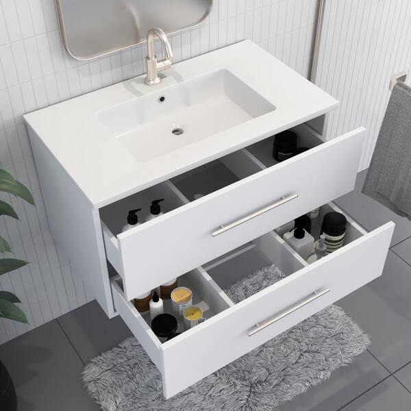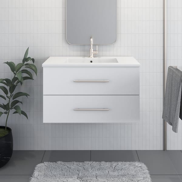 Napa 36 in. W x 20 in. D Single Sink Bathroom Vanity Wall Mounted in White with Acrylic Integrated Countertop