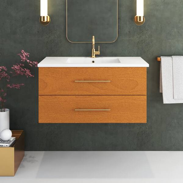Napa 40 in. W x 20 in. D Single Sink Bathroom Vanity Wall Mounted in Pacific Maple with Acrylic Integrated Countertop