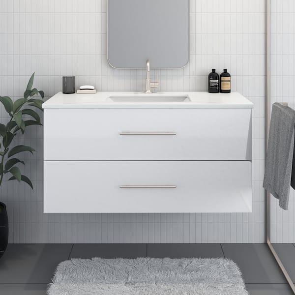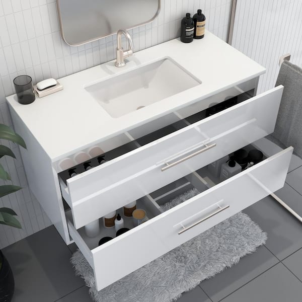 Napa 48" W x 22" D x 21-3/8" H Single Sink Bathroom Vanity Wall Mounted in Glossy White with White Quartz Countertop