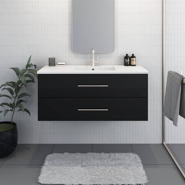 Napa 48 in. W x 20 in. D Single Sink Bathroom Vanity Wall Mounted in Glossy Black with Acrylic Integrated Countertop