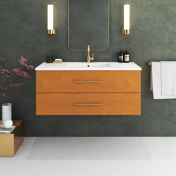 Napa 48 in. W x 20 in. D Single Sink Bathroom Vanity Wall Mounted in Pacific Maple with Acrylic Integrated Countertop