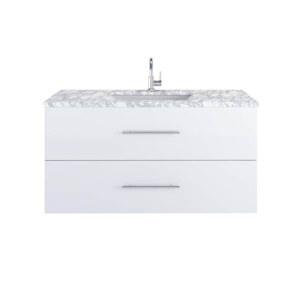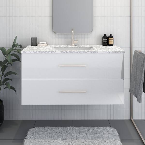 Napa 48 in. W x 22 in. D x 21-3/4 in. H Single Sink Bath VanityWall in Glossy with White Carrera Marble Countertop