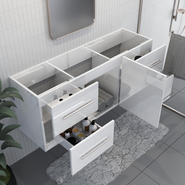 Napa 60 in. W x 18 in. D x 21 in. H Single Sink Bath Vanity Cabinet without Top in Glossy White, Wall Mounted