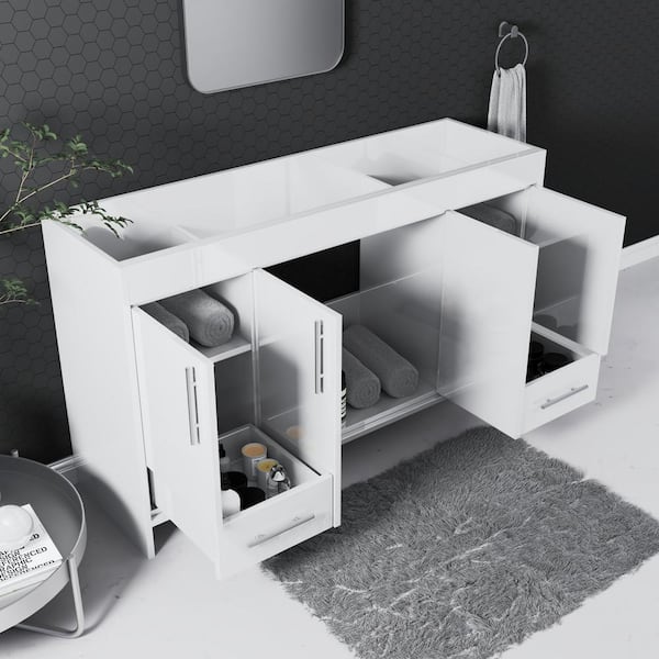 Pacific 60 in. W x 18 in. D x 33.88 in. H Bath Vanity Cabinet without Top in Glossy White