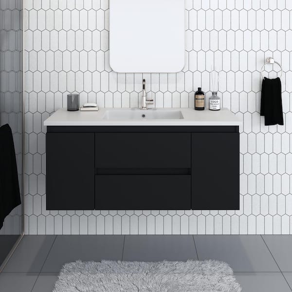 Salt 48 in. W x 20 in. D Bath Vanity in Black with Acrylic Vanity Top in White with White Basin
