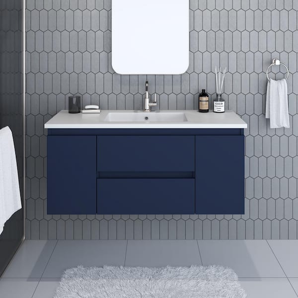 Salt 48 in. W x 20 in. D Bath Vanity in Navy with Acrylic Vanity Top in White with White Basin