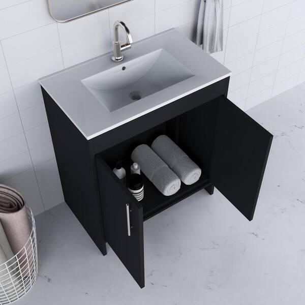 Villa 30 in. W x 18 in. D Bathroom Vanity in Black with Ceramic Vanity Top in White with White Basin