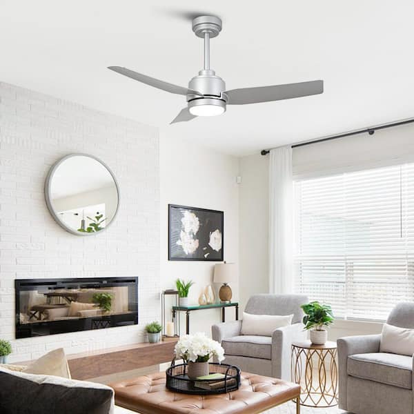 42 in. Indoor Integrated LED Silver Dimmable Ceiling Fan with Light DC Motor and Remote Control