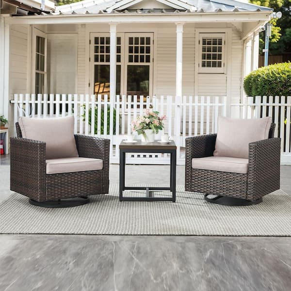 Valenta Brown 3-Piece Wicker Patio Conversation Set with Beige Cushions