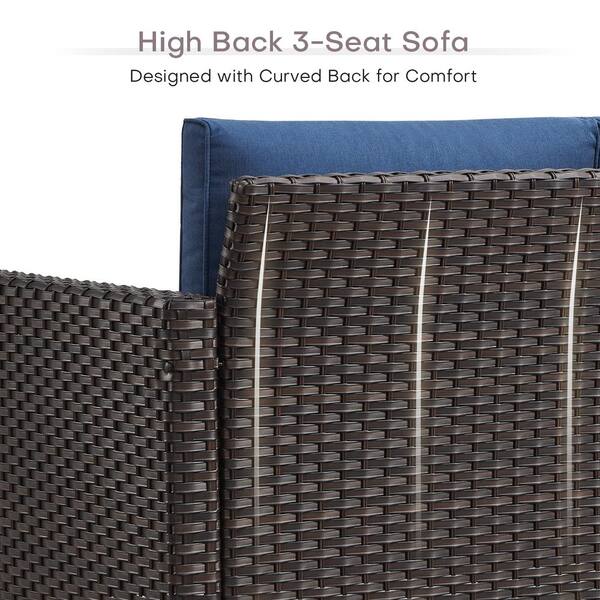 Valenta Brown 7-Piece Wicker Patio Conversation Seating Set with Blue Cushions