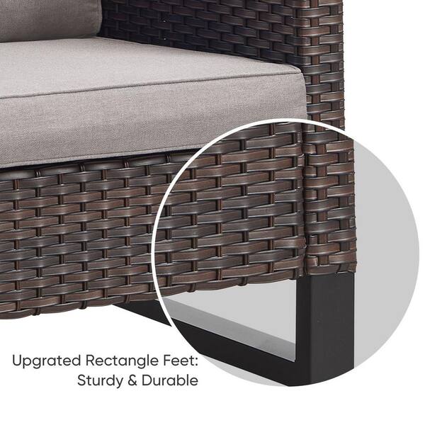 Valenta Brown Outdoor 5-Piece Wicker Patio Swivel Rocking Chairs Set with Cushions, Coffee Table and Firepit Table