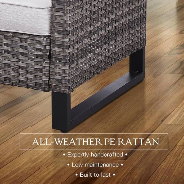 Valenta Gray 5-Piece Outdoor Rattan Deep Seating Set Wicker Patio Conversation Lounge Chair Set with Beige Cushion