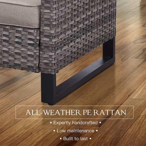 Valenta Gray 5-Piece Outdoor Rattan Deep Seating Set Wicker Patio Conversation Lounge Chair Set with Gray Cushion