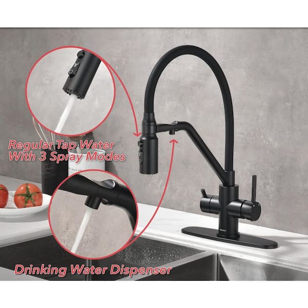 Premium Series Matte Black 18 in. H Pull Out Sprayer Kitchen Faucet with 360° Dual-Swivel