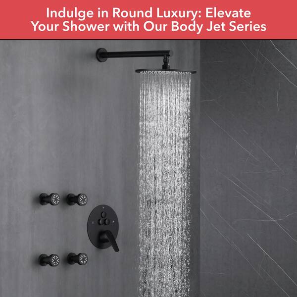 Single Handle 3-Spray Shower Faucet 1.8 GPM 10 in. Round Wall Mounted with Pressure Balance in Matte Black with 4-Jet