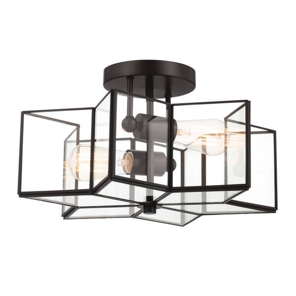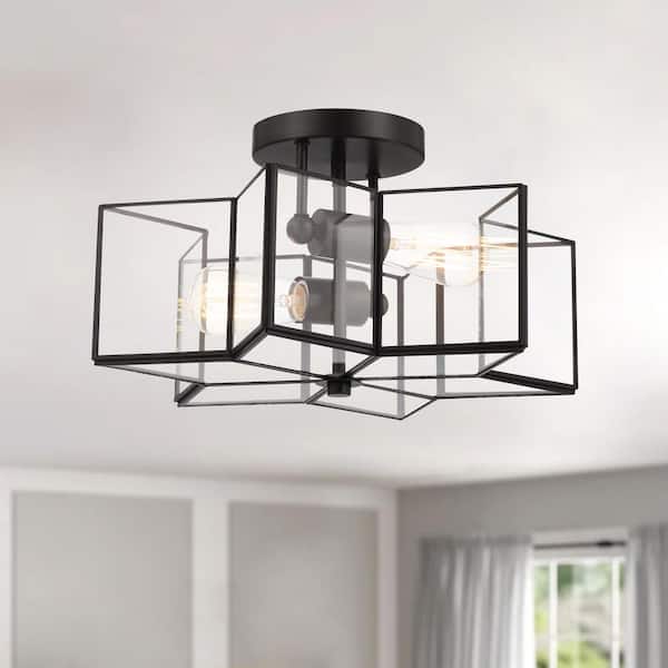 16.14 in. 2-Light Black Unique/Statement Star Semi Flush Mount