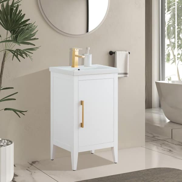 20 in. W x 15.8 in D x 34 in. H Single Sink Bathroom Vanity Cabinet in White with Ceramic Top