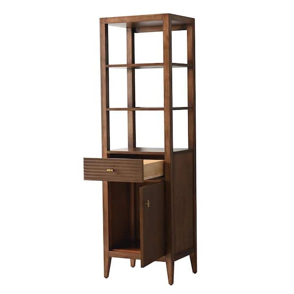 21 in. W x 17 in. D x 72 in. H Brown Freestanding Linen Cabinet in Linear Walnut with Golden Hardware