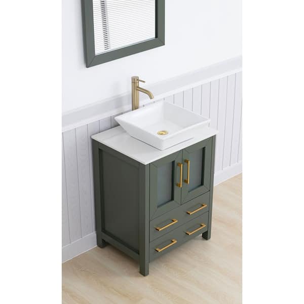 24 in. W Single Basin Vintage Green Bath Vanity with White Engineered Marble Top and Mirror